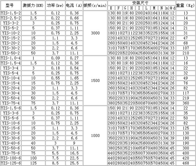 注:此外我公司还生产YZS、YZO和YZUL系列振动电机。