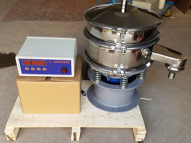 超声波旋振筛是一种高精度细粉筛分机械,其噪音低、效率高,快速换网需3-5分钟,全封闭结构,适用于粒、粉、粘液等物料的筛分过滤。旋振筛是由直立式电机作激振源,电机上、下两端安装有偏心重锤,将电机的旋转运动转变为水平、垂直、倾斜的三次元运动,再把这个运动传递给筛面。调节上、下两端的相位角,可以改变物料在筛面上的运动轨迹。